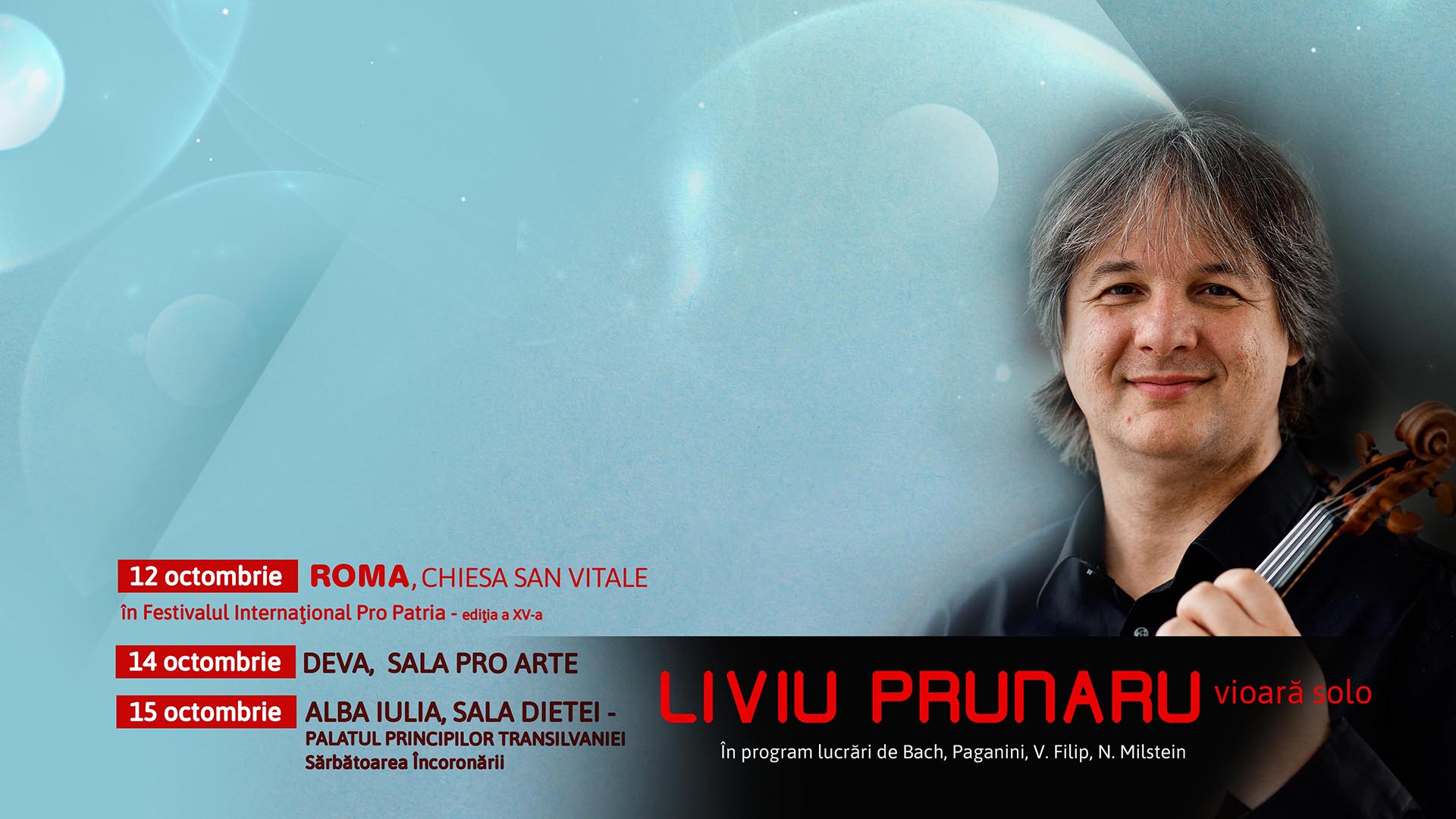 ”După emoțiile extraordinare din primăvară, simt că această a doua ediție a turneului este o continuare firească, dar și o nouă provocare. Fiecare oraș are energia lui, iar faptul că voi cânta la Roma, la Deva și la Alba Iulia, într-un context atât de special, îmi dă un sentiment de recunoștință și bucurie. Publicul a fost sufletul primei ediții și sunt convins că și acum vom trăi împreună momente frumoase.” spune violonistul Liviu Prunaru